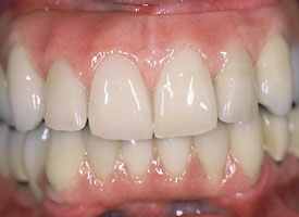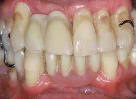 Durch Parodontose und eine schlechtsitzende Klammerprothese sind die Zähne immer länger, lockerer und unansehnlicher geworden.